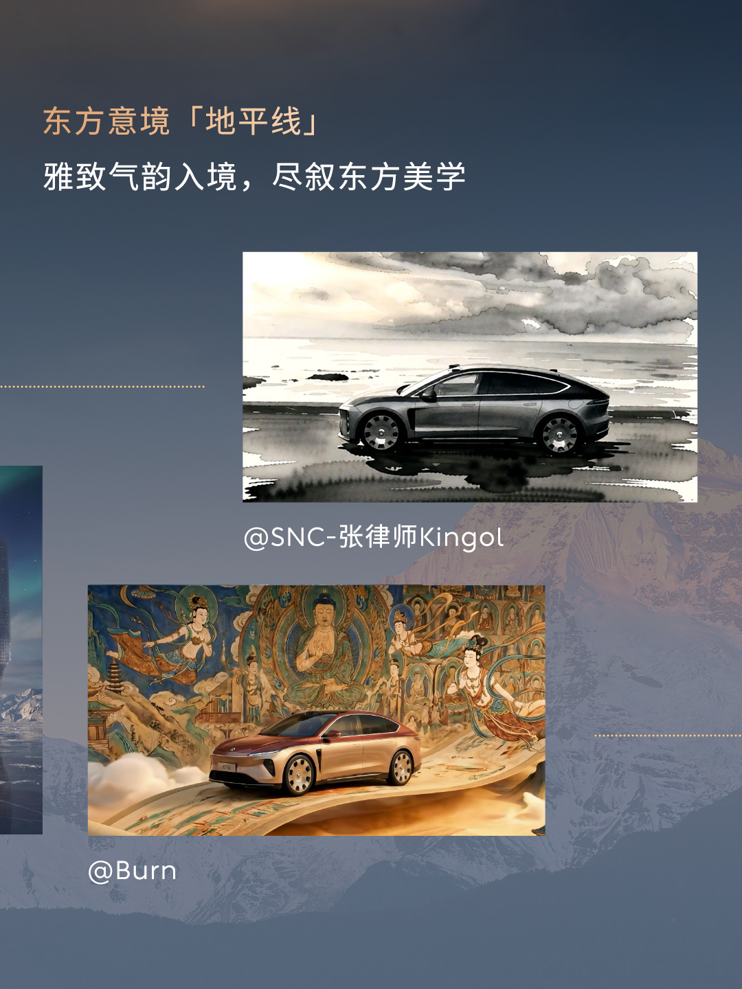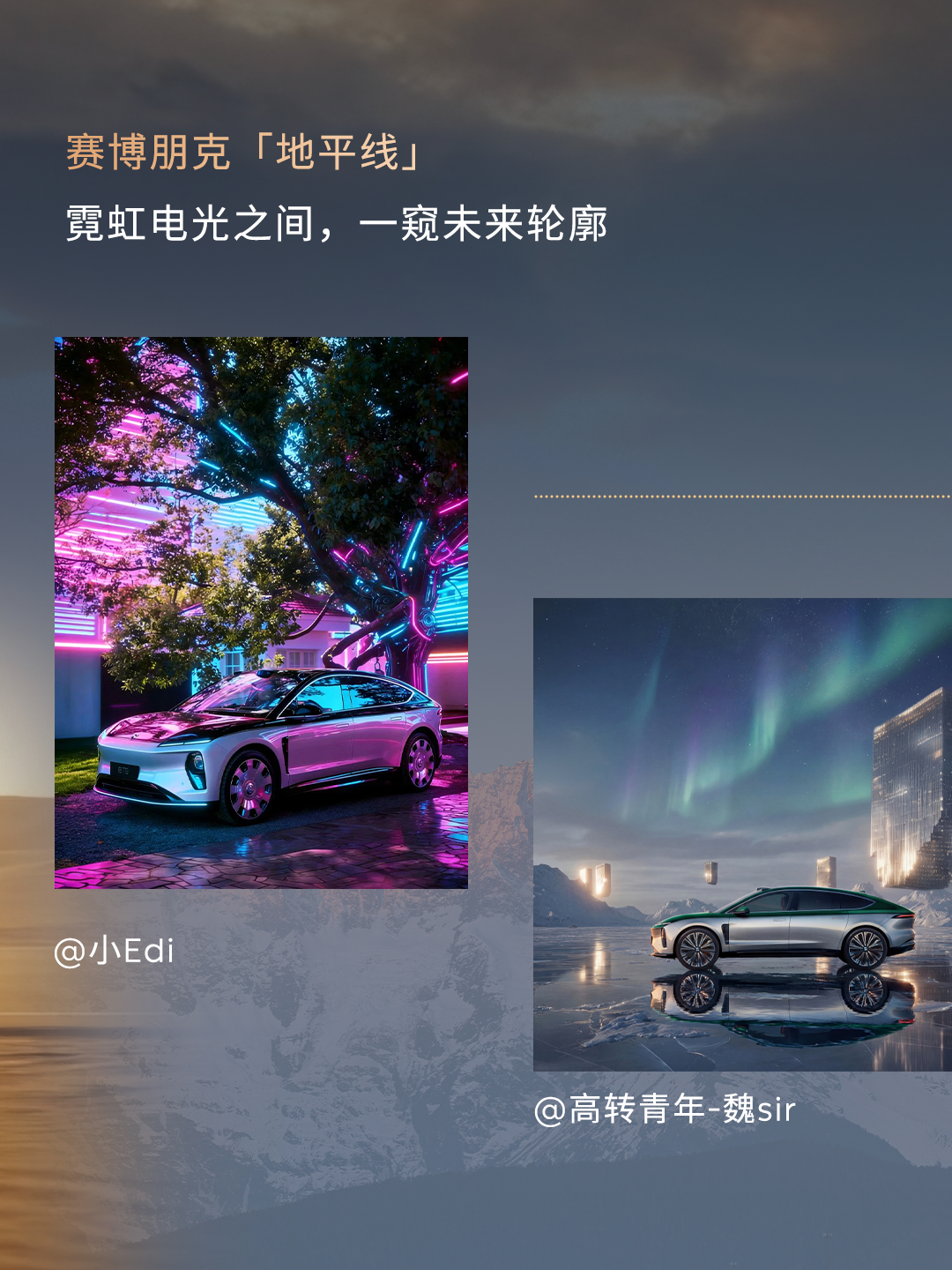 跟着蔚來ET9地平線特別版開啓話題活動#2026年尋找最美地平線第一階段的話題徵集告一段落用戶們通過想象力與AI技術共創出許多優秀作品從賽博朋克到東方意境再到迴歸自然本真的天地色彩接下來蔚來ET9地平線特別版將會帶來全新色彩主題敬請期待#蔚來 #蔚來ET9敢想有為點擊即刻預約試駕蔚來ET9