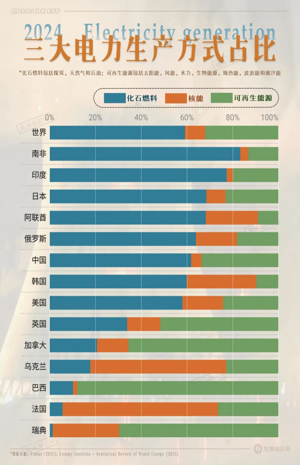 在近幾十年中,法國的核電佔比一直穩居世界之首▼