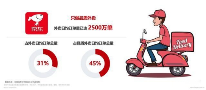 在2025年的虧損中,佔比最大的則是京東外賣,通過大額補貼等措施,曾一度動搖整個外賣市場格局,據艾瑞諮詢數據,截至2025年6月1日,京東外賣佔據全國外賣市場超31%的份額,在品質外賣細分領域約有45%的市場佔有率。