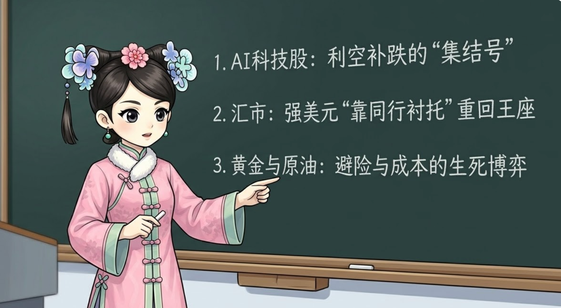 黃金(左右為難): 短期看,因為不降息,黃金這種不生利息的資產肯定受壓,金價出現了高位回落。但長線看,地緣政治動盪和「去美元化」就是黃金底部的剛性支撐,跌也跌不到哪去。