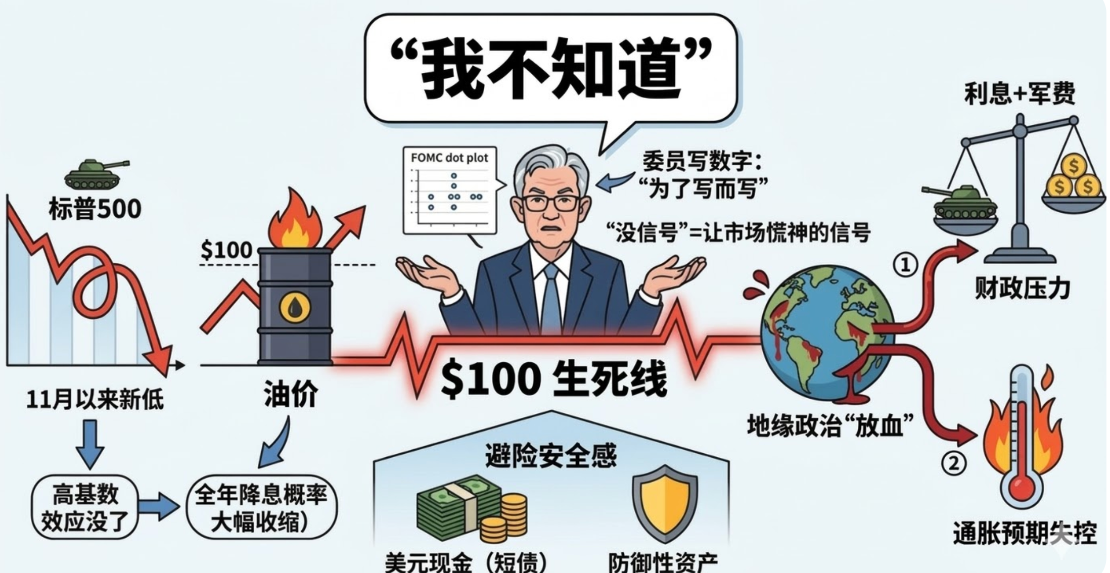 他說不知道伊朗衝擊有多大,說委員們寫數字只是「為了寫而寫」。這種「沒信號」,就是最讓市場慌神的信號。