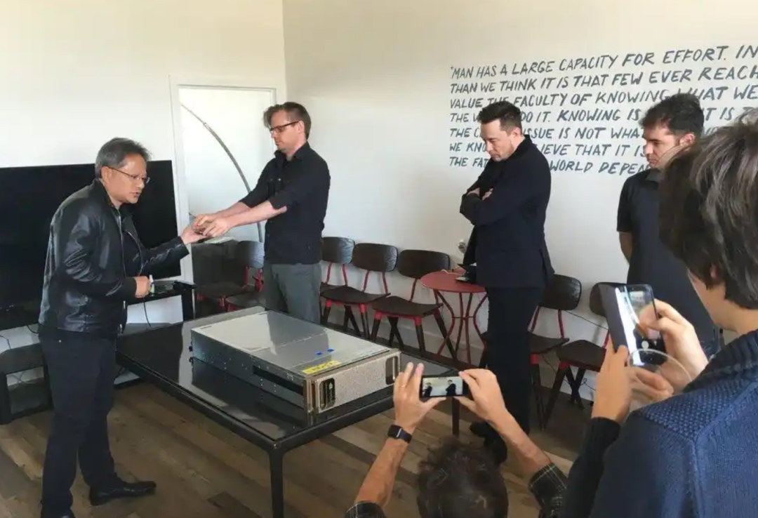 比較早期、也是比較著名的一次,就是10年前送給OpenAI的首台DGX-1(當時馬斯克還是OpenAI聯合創始人)。