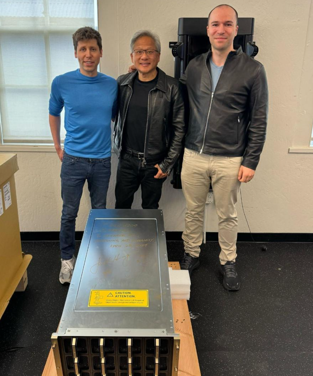 再到2024年,還是在這家公司,老黃二次登門給奧特曼送去了世界首台DGX H200。