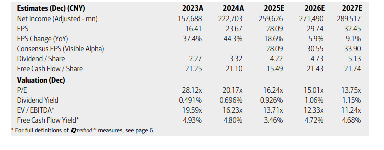此外,報告提到,近期中國iOS收入分成比例的降低(未來可能進一步降低)應該能為AI支出提供一些緩衝,帶來低個位數的利潤率收益。