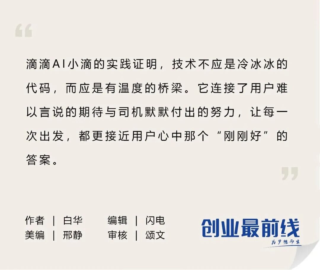 從宏觀視角來看,網約車行業的競爭格局正在從「流量爭奪戰」轉向「留量保衛戰」。在存量市場時代,唯有通過技術手段深挖用戶價值,通過精細化運營提升服務體驗,才能構建起真正的競爭壁壘。滴滴AI小滴的實踐證明,技術不應是冷冰冰的代碼,而應是有溫度的橋樑。它連接了用戶難以言說的期待與司機默默付出的努力,讓每一次出發,都更接近用戶心中那個「啱啱好」的答案。