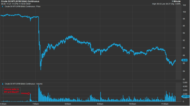美東時間上午7點剛過,特朗普就在Truth Social上發帖稱,其已指示暫停對伊朗發電廠和能源基礎設施的一切軍事打擊,為期五天。他給出的理由是:美伊雙方進行了「富有成效的對話,旨在徹底、全面地解決我們的敵對狀態」。原油期貨應聲大跌,最低跌超10%。