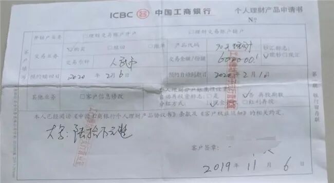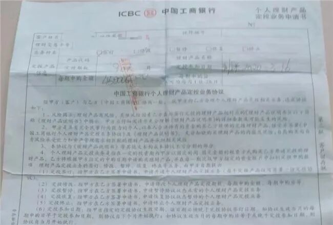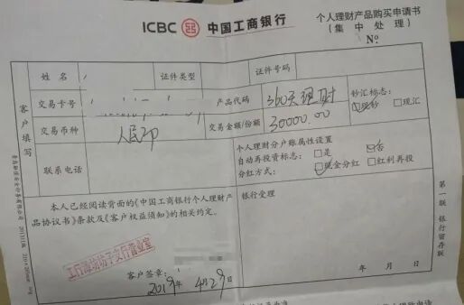 多位受害人向本報記者提供了相關證據,其中,工商銀行個人理財產品申請書等上清晰可見「工行濰坊坊子支行營業室」等印章。