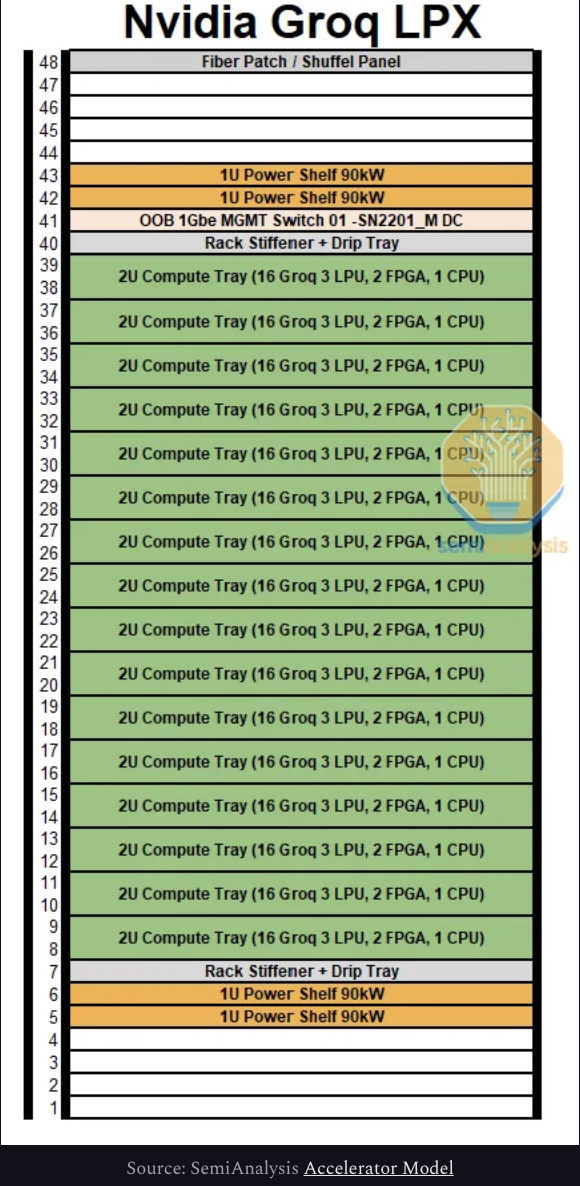 LP30以單一整體裸片形式存在,無需先進封裝。值得關注的是,SF4工藝不擠佔英偉達在台積電N3上的稀缺產能配額,也不消耗同樣緊張的HBM資源,因此LPX系統代表的是真正意義上的增量產能與增量收入,據SemiAnalysis指出,這是競爭對手無法複製的差異化優勢。