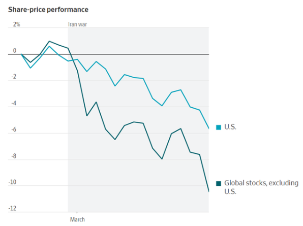 從上圖可以看出,「走向全球化」的敘事顯然已被顛覆——即「賣出美國」資產。這正對美國以外的股市造成震盪,令年初買入該策略的投資者遭受重創。現在,鑑於美國經濟能源獨立(美國是能源淨出口國),全球投資者現在開始將長期衝突的預期計入股價。