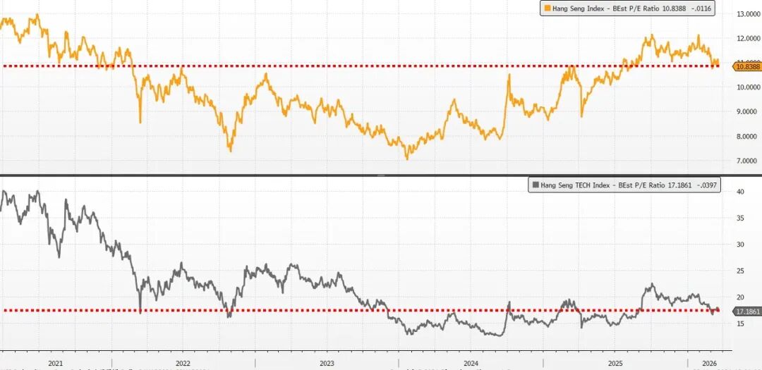 產業方面,上周港股恒生科技龍頭騰訊和阿里也交出了25Q4的財報。騰訊這邊,遊戲和廣告支撐下收入按年增長13%,整體業績並不差,廣告也明顯受益於變現率的提升,但股價壓力主要來自管理層明確表示2026年要大幅加碼AI投入、並縮減回購,意味着短期利潤率和股東回報節奏要為AI讓路;阿里這邊恰恰相反,主營電商收入增長基本停滯,利潤受費用和投入拖累,但云業務按年增長36%,AI相關需求繼續強,管理層還給出未來五年AI+雲收入超1000億美元的目標。