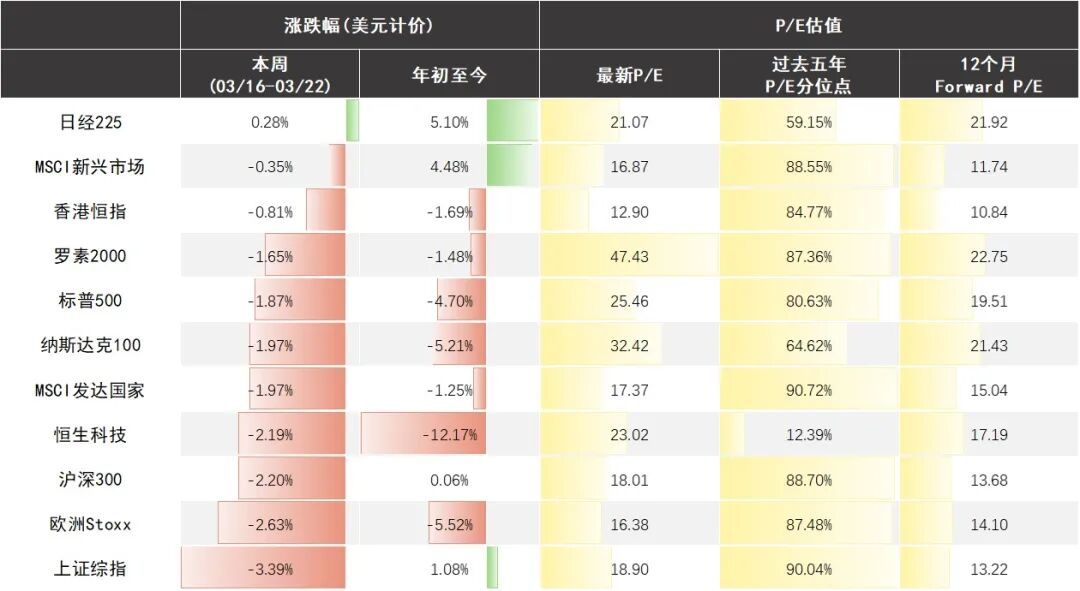 上周,全球市場主線仍是伊朗局勢升級帶來的再定價。美國市場方面,衝突持續發酵使風險資產明顯承壓,美股跌破關鍵技術位,長債與黃金亦同步回落,顯示市場已開始交易戰事中期化及通脹回升風險。短期看,在霍爾木茲海峽恢復基本通航、伊朗高烈度反擊明顯減弱之前,局勢仍可能先升級後緩和,組合層面宜繼續控制風險敞口。不過,AI主線的產業景氣並未削弱,美光強勁的業績與指引再次驗證「存儲超級周期」,也說明具備真實盈利支撐的AI核心資產正逐步顯現配置價值。