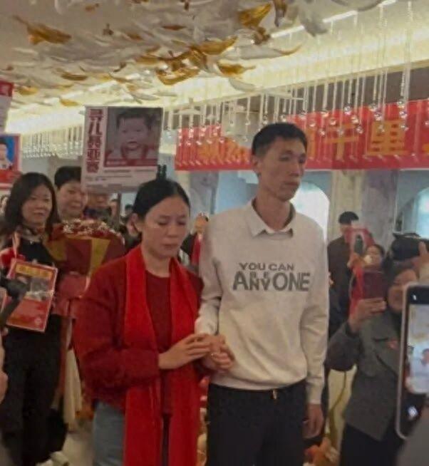 下一個環節是家屬上台合照。在姐弟倆四十餘年的人生之中,母親病逝,父親失蹤,父母留下痕跡的時間太稀薄,他們孤獨漂泊的時間太長。舞台上,戴着紅色圍巾的親戚擠滿舞台,李林和李鑫一起被圍在中間,一位女性親戚悄悄地擦掉眼淚。
