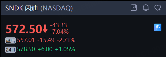 隔夜大跌的存儲概念股夜盤反彈。閃迪升逾1%,美光科技漲0.6%,希捷科技漲0.7%,西部數據漲0.3%。