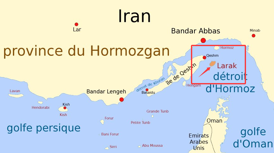 拉臘克島位於霍爾木茲海峽附近的伊朗控制水域,憑藉地理位置優勢,伊朗得以對繞道船隻實施事實上的通行管控。