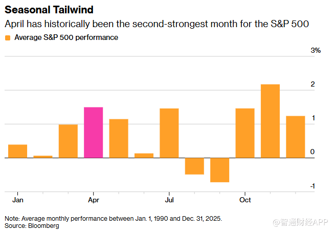 4月7日,多頭認為,美國股市的震盪走勢已接近尾聲,季節性規律也為其提供了支撐。Bloomberg彙編的數據顯示,4月曆來是美股表現強勢的月份——自1990年以來,標普500指數在該月平均上漲1.5%,漲幅僅次於11月(2.2%)。有市場觀點認為,這種季節性走強與散戶投資者行為相關:他們在月中報稅截止日後,往往重新將資金投入股市。