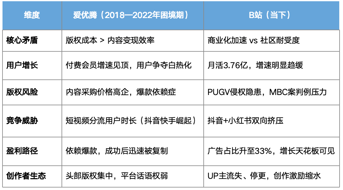提這個問題,不是危言聳聽。是因為B站正在經歷的結構性困境,和愛優騰當年的前奏,驚人地相似。