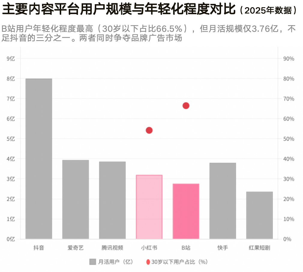 有一個數據很能說明問題。2025年9月,紅果免費短劇月活用戶達到2.36億,首次超越B站的2.27億。短劇平台,一個在兩年前幾乎不存在的品類,在月活規模上追平了B站。而短劇的廣告ARPU(每用戶平均收入),據測算已超過愛奇藝的會員ARPU。