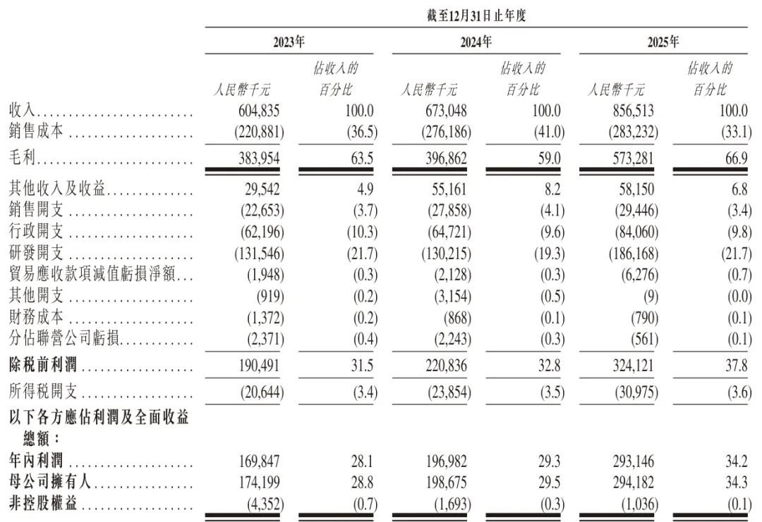 招股書顯示,長光辰芯2023年、2024年、2025年營收分別為6.05億元、6.73億元、8.57億元;毛利分別為3.84億元、4億元、5.73億元,毛利率分別為63.5%、59%、66.9%。
