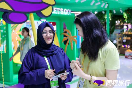 第六屆消博會同程旅行展區,工作人員與國際同行交流