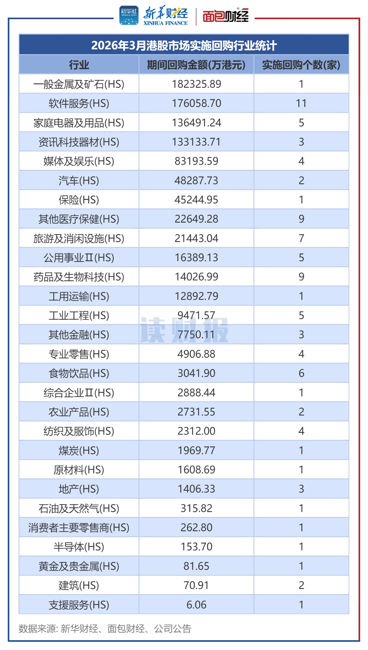 2026年3月發起回購的港股上市公司,主要分佈在軟件服務等行業。