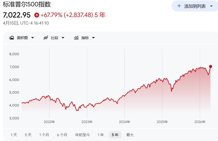 標普500指數周三收盤再創歷史新高,報7022.95點,年內已五度刷新紀錄。