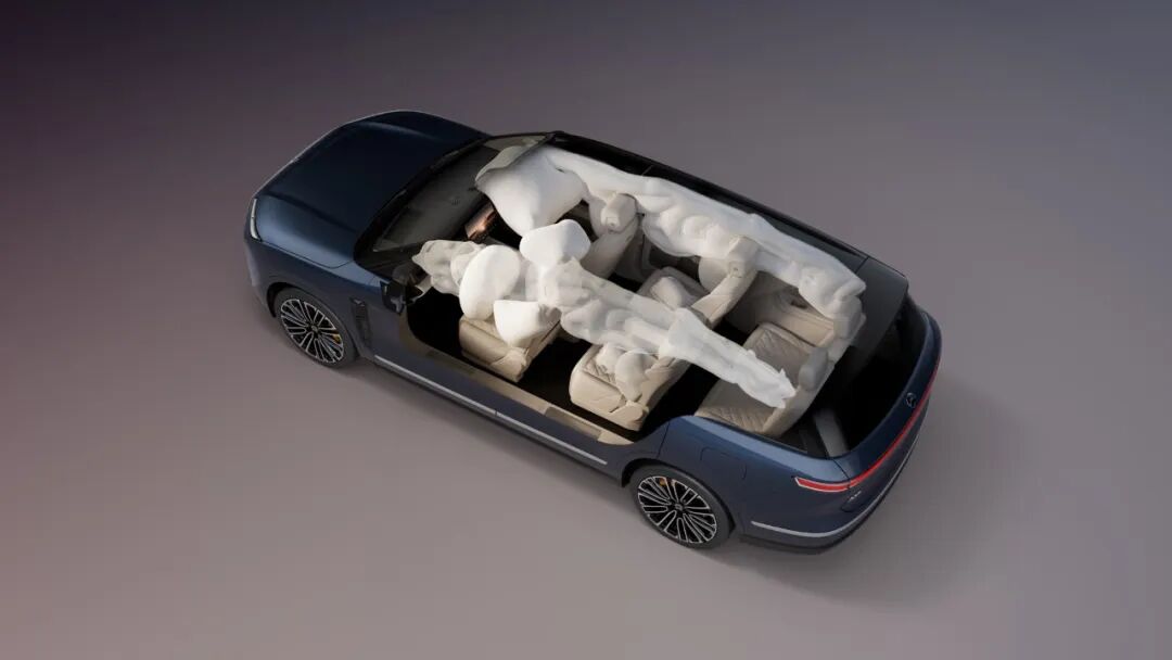 全新ES8六座版全車配備11個氣囊,但並非在任何碰撞事故下均會點爆。為有效降低氣囊點爆可能帶來的二次傷害,並為後續可能發生的連續碰撞提供防護,系統會根據碰撞強度與方向智能判斷:對乘員無法形成有效保護的氣囊,將不會觸發點爆。