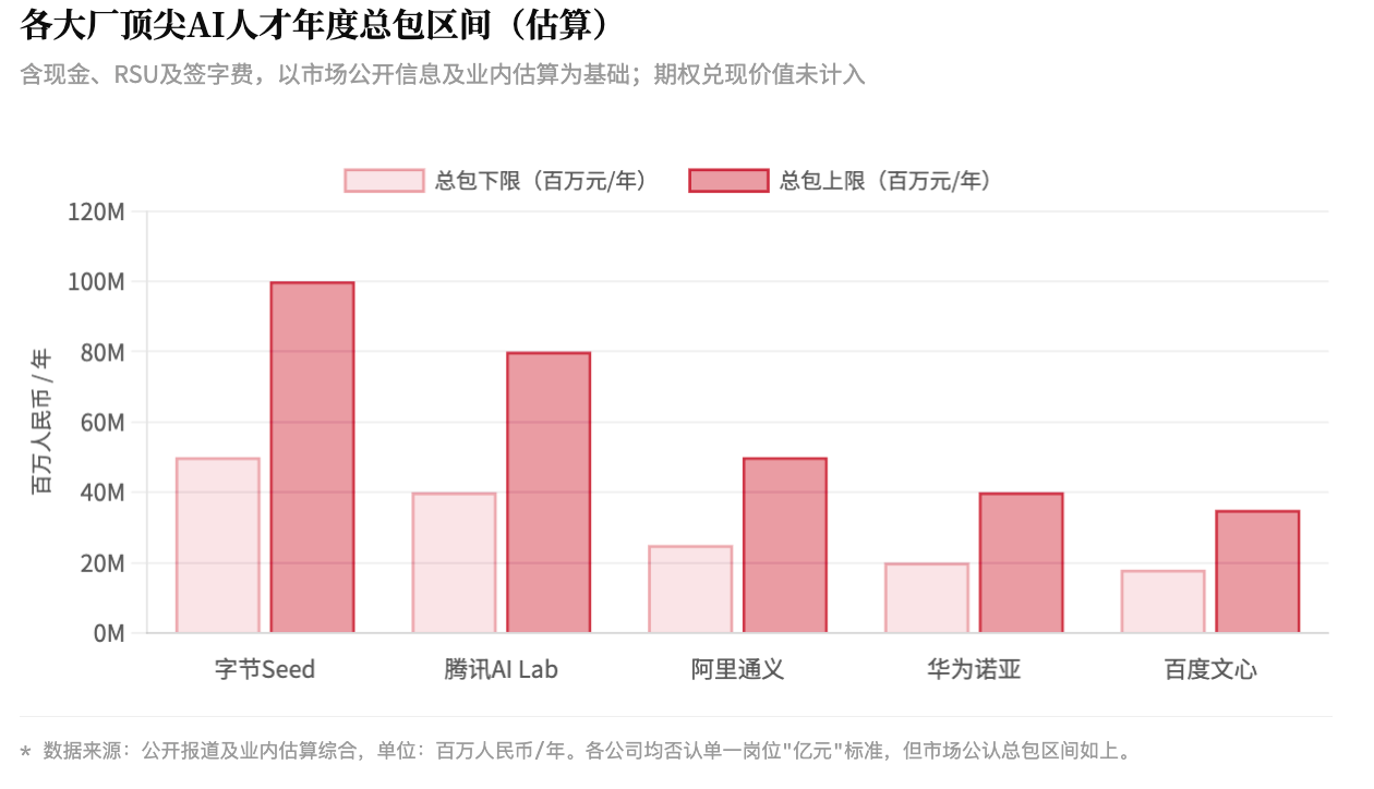 一側是令人咂舌的財富神話。騰訊將原OpenAI研究員姚順雨招至麾下,任CEO辦公室首席AI科學家;字節跳動則拿下DeepSeek核心研究員郭達雅,據晚點LatePost報道,樂觀情形下其豆包股四年歸屬後總收益可能高達數億元,摺合年均近億元(儘管字節官方隨即闢謠稱「沒有招聘近億元年薪員工」,但這個數字本身已經足夠說明問題)。此外,優必選向全球發出招聘邀請,為首席科學家開出最高1.24億元人民幣的薪酬包(含現金、股權激勵及成果轉化分成)。