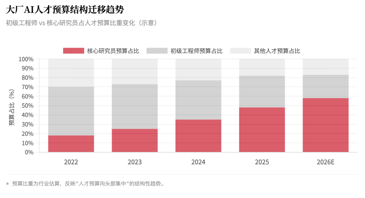 大廠用AI替代數以千計的初級工程師,將省下的「人頭費」全部梭哈在那幾十個核心大腦上。「以底養頂」的循環下,組織的預算正從寬廣的毛細血管,強行匯入極少數的主幹動脈。