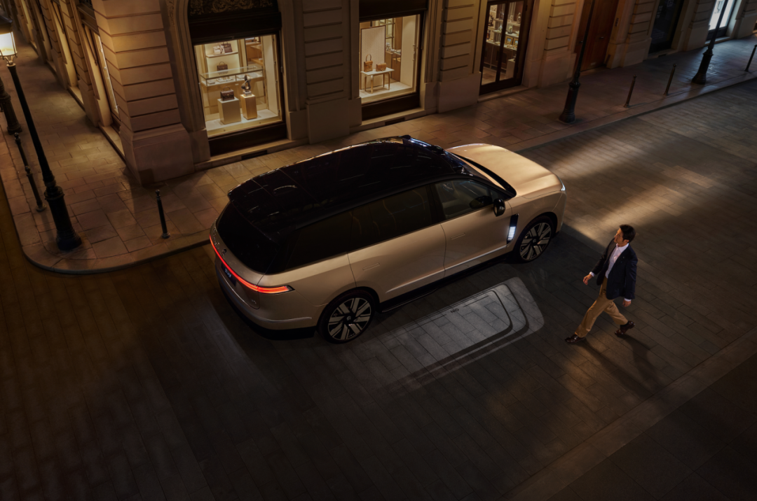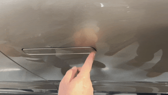 在造型方面,隱藏式設計巧妙融入車身,最大化保持車身純粹、流暢的線條,提升整車風阻表現、提升續航。門把手在自動/手動解鎖時會自動展開,便於持握開門;在車輛運動狀態下自動收回,與車門融為一體。門把手還整合了感應式迎賓燈,在偏暗的環境中,會隨門把手的彈出一併點亮,便於上下車時看清車門下的情況,避免意外磕碰。