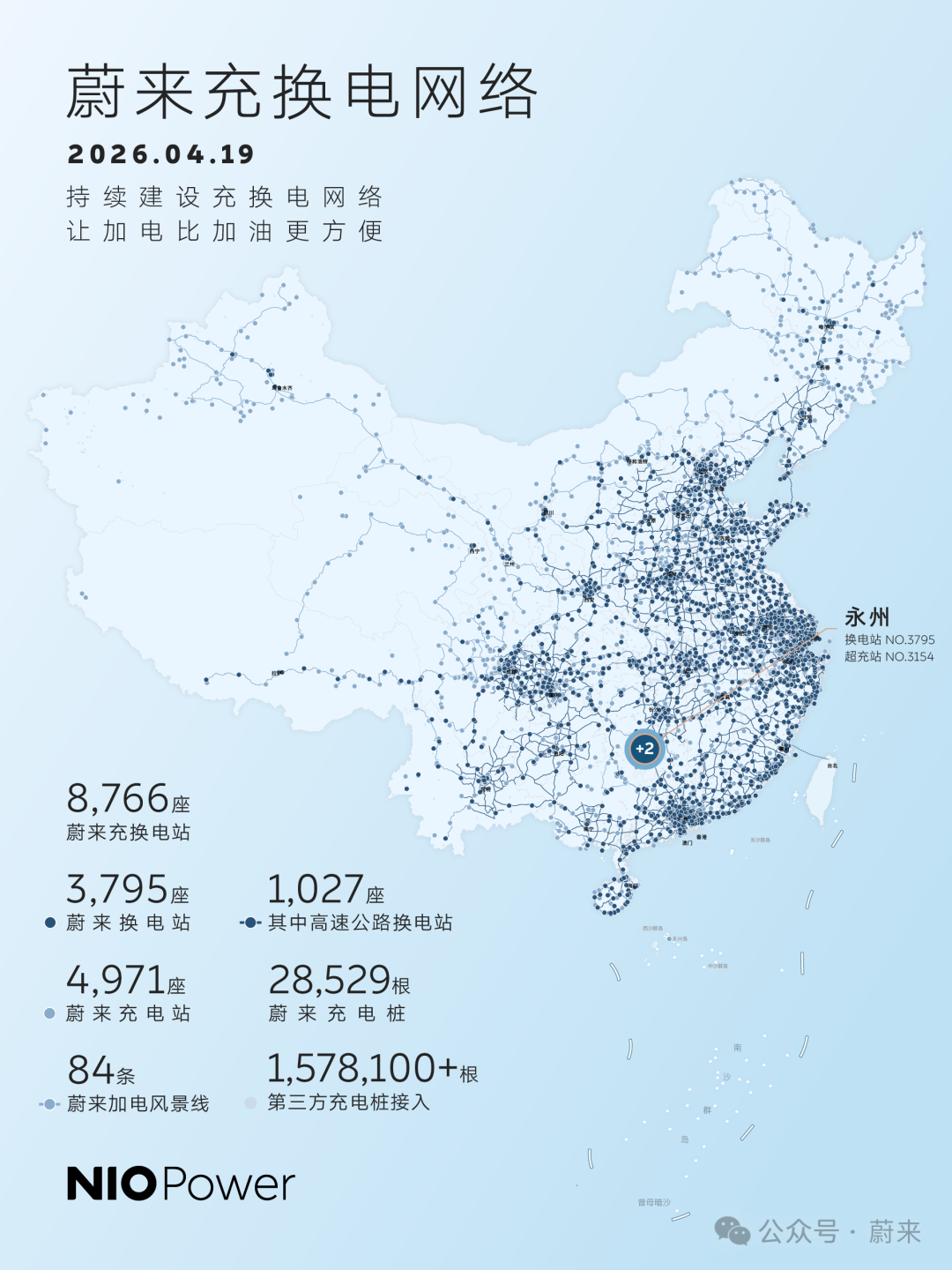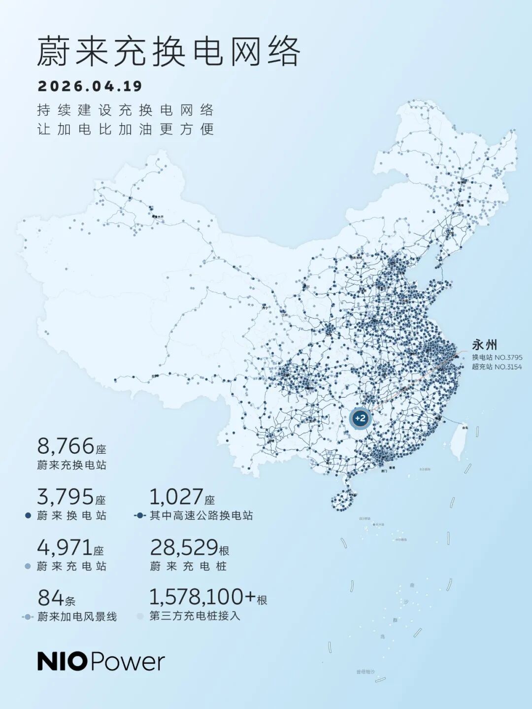 NO.3795 蔚來換電站 | 永州零陵瀟湘汽車城NO.3154 蔚來超充站 | 永州零陵瀟湘汽車城截至今日,蔚來全國建成8,766座充換電站,其中換電站3,795座,充電站4,971座、充電樁28,529根,累計提供超1億次換電,持續建設,讓加電比加油更方便!#蔚來 #蔚來換電去哪都方便 #蔚來ES9 #蔚來ES8 #蔚來ET5 #蔚來ET5T #蔚來ES6 #蔚來EC6 #蔚來ET9 點擊即刻了解蔚來全系車型
