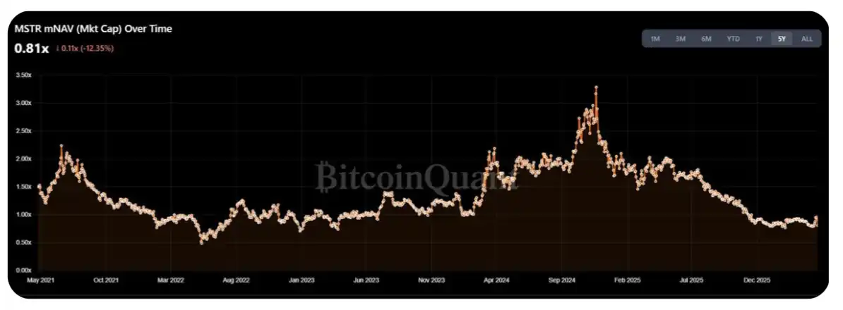 一旦缺乏新增買盤,mNAV 跌破 1 倍;