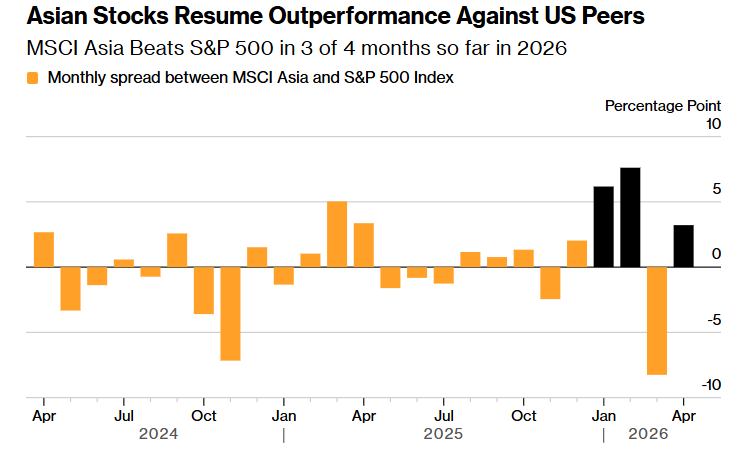 FX168財經報社(亞太)訊 隨着市場對亞洲在人工智能熱潮中核心地位的信心增強,投資者正重新採用戰前交易邏輯,即押注亞洲股市表現將優於美國同行。