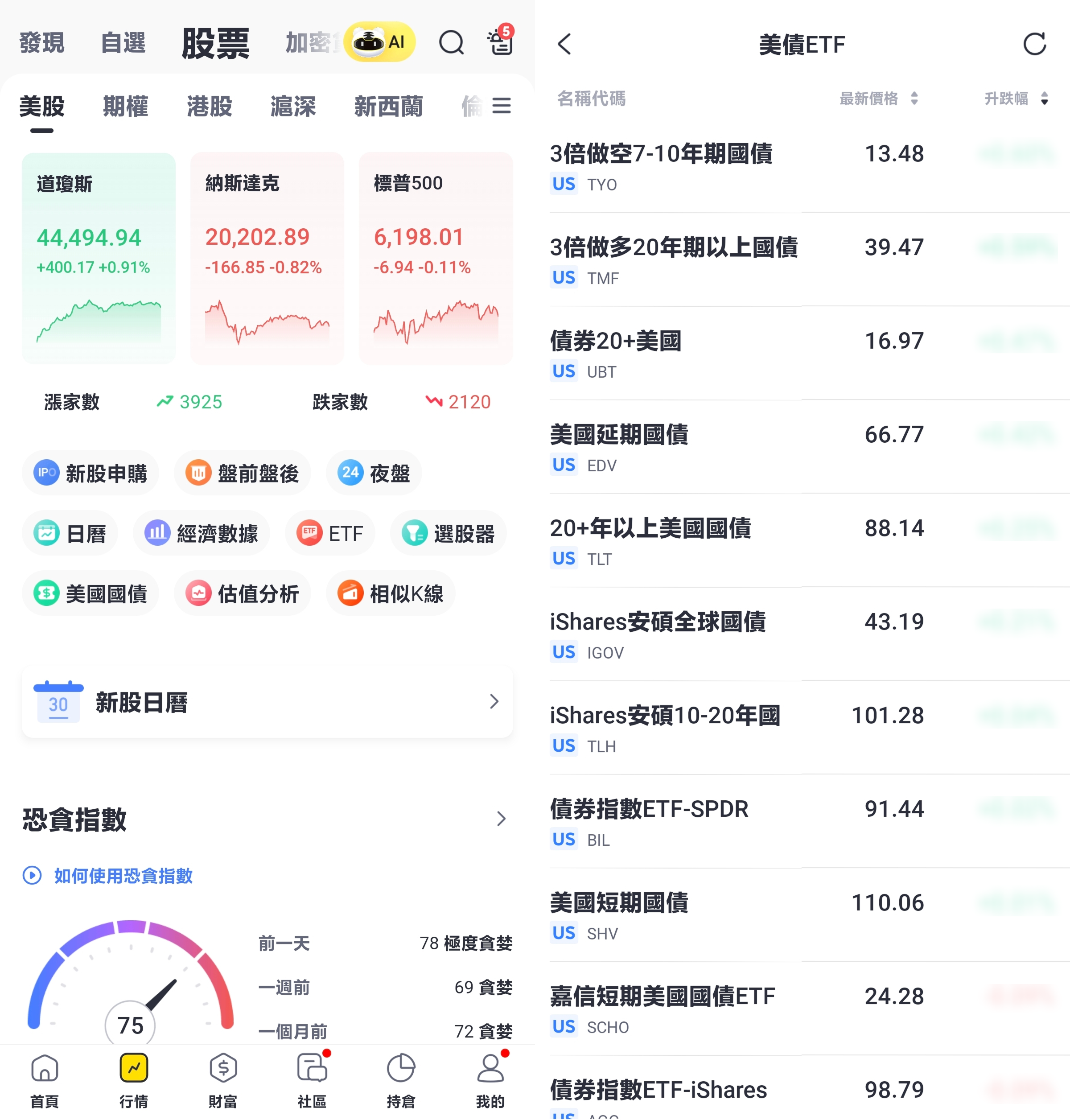 點擊「美國國債」按鈕,向下滑動至頁面底部,點擊「美債ETF」即可查看列表。