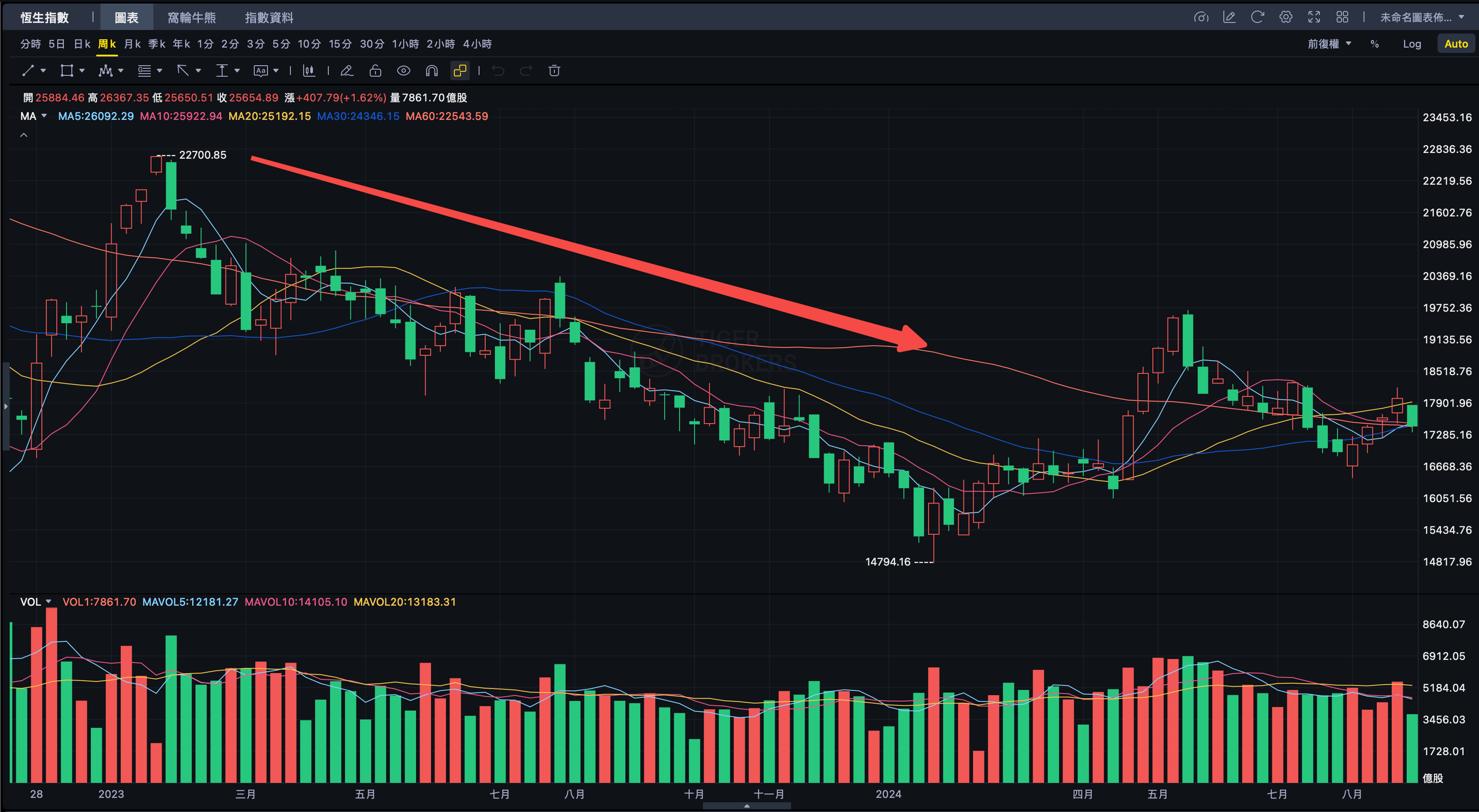 就算係大型指數ETF,喺市場高位一鋪過買入照樣可以遭受重大虧損 。例如2023年港股年初急升至頂點附近(恒指1月下旬高見約22,700點),其後一路反覆向下,到同年12月中低見約15,972點,累計最大跌幅接近30% 。如果投資者係高位先至入市,呢段期間資產價值幾乎腰斬,跌幅同樣驚人。