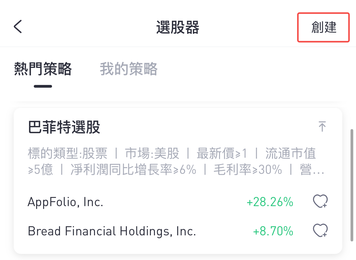 第一步:進入股票-美股-選股器,創建“高股息率組合”。