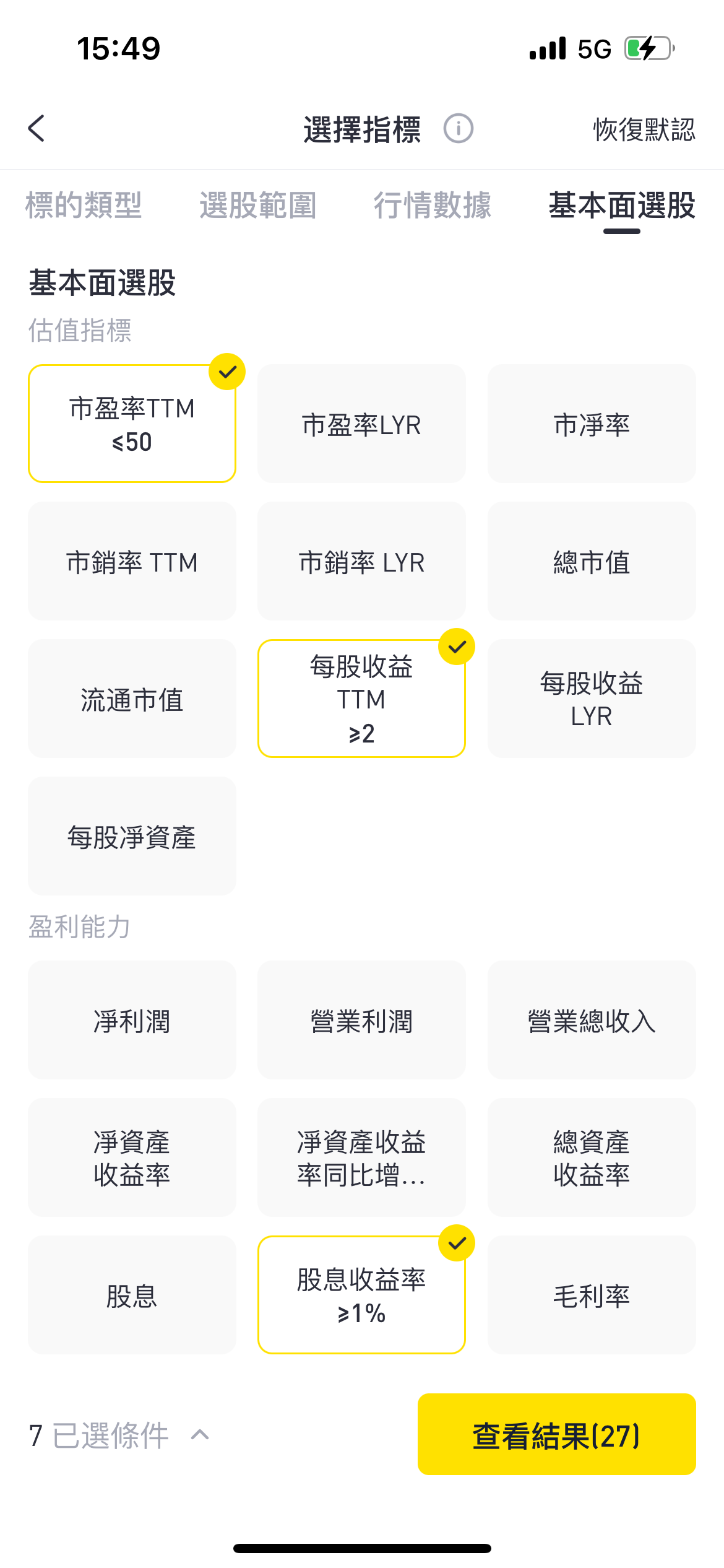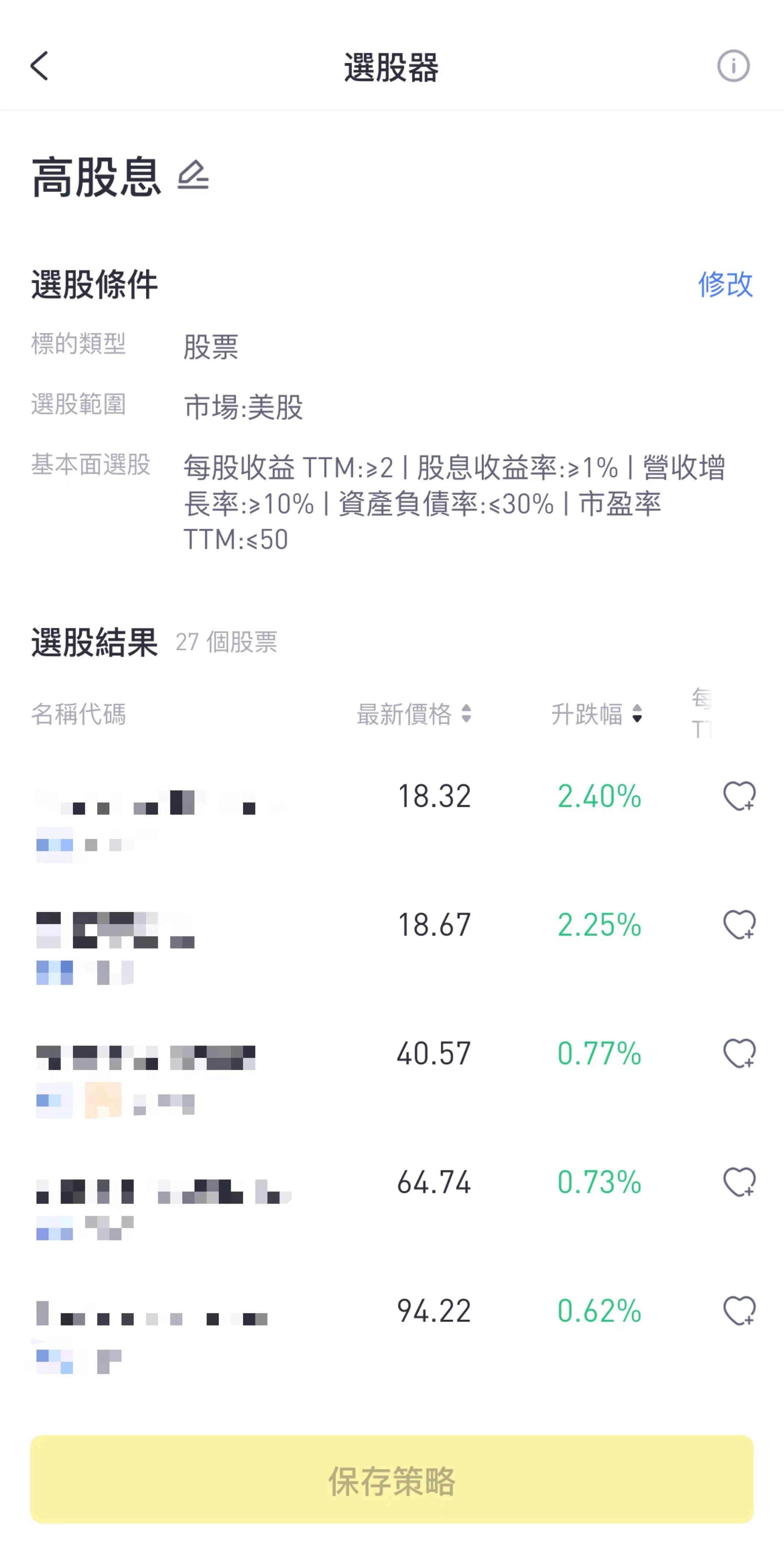 呢個時候我地就可以篩選出27隻符合標準嘅高股息股票,你也可以根據自己嘅判斷,自定指標同數據。