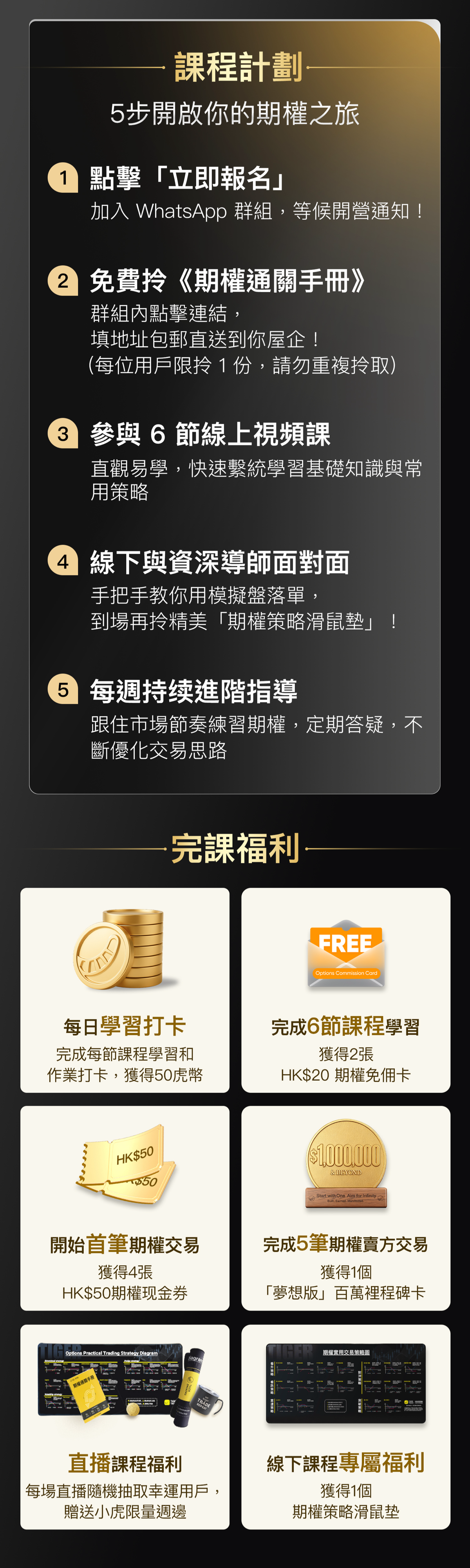{"basename":"/hk","ssrTDKData":{"titleTemplate":"%s - 老虎證券","title":"資深交易員帶你入門期權交易,逐步提升實戰能力","description":"期權好難、交易沒方向?加入期權訓練營,從模擬盤練習到實戰能力提升,利用期權捕捉更多財報季機會","keywords":"期權,期權學習,投資,知識,交易知識,交易策略,期權策略,美股,港股,美股期權,港股期權,活動,會議,投資分享","social":{"ogDescription":"期權好難、交易沒方向?加入期權訓練營,從模擬盤練習到實戰能力提升,利用期權捕捉更多財報季機會","ogImage":"https://c1.itigergrowtha.com/portal5/static/media/og-logo.be62fbe1.png","ogUrl":"https://www.itiger.com/hk/marketing/optionstrading2026"},"companyName":"老虎證券"},"sem":{"content":[{"tags":["基础组件"],"props":{"image":"https://static.tigerbbs.com/a02e5c7985839b29d56799e93f80a16c","styles":{"md":{"marginLeft":"","marginRight":"","paddingLeft":300,"paddingRight":300},"xs":{}},"imageH5":"https://static.tigerbbs.com/a02e5c7985839b29d56799e93f80a16c","linkConfig":{"app":{}}},"title":"图片","canDrag":true,"preview":"https://static.tigerbbs.com/f0cc0acf96a46ab4b1d6ebd2d899b4ae","componentName":"Image","componentType":"atomic","isInnerWrapper":true},{"tags":["基础组件"],"props":{"image":"https://static.tigerbbs.com/d70795f17f13bd631519d6336263258e","styles":{"md":{"marginLeft":"auto","marginRight":"auto","paddingLeft":300,"paddingRight":300,"borderLeftWidth":100},"xs":{}},"imageH5":"https://static.tigerbbs.com/d70795f17f13bd631519d6336263258e","linkConfig":{"app":{}}},"title":"图片","canDrag":true,"preview":"https://static.tigerbbs.com/f0cc0acf96a46ab4b1d6ebd2d899b4ae","componentName":"Image","componentType":"atomic","isInnerWrapper":true},{"tags":["基础组件"],"props":{"image":"https://static.tigerbbs.com/642100d9d5035b8d196e3792f08505b3","styles":{"md":{"paddingLeft":300,"paddingRight":300},"xs":{}},"imageH5":"https://static.tigerbbs.com/642100d9d5035b8d196e3792f08505b3","linkConfig":{"app":{}}},"title":"图片","canDrag":true,"preview":"https://static.tigerbbs.com/f0cc0acf96a46ab4b1d6ebd2d899b4ae","componentName":"Image","componentType":"atomic","isInnerWrapper":true},{"tags":["基础组件"],"props":{"image":"https://static.tigerbbs.com/2f400ca3cb7b6087fd626a5e22110828","styles":{"md":{"marginLeft":"","paddingLeft":300,"paddingRight":300},"xs":{}},"imageH5":"https://static.tigerbbs.com/2f400ca3cb7b6087fd626a5e22110828","linkConfig":{"app":{}}},"title":"图片","canDrag":true,"preview":"https://static.tigerbbs.com/f0cc0acf96a46ab4b1d6ebd2d899b4ae","componentName":"Image","componentType":"atomic","isInnerWrapper":true},{"tags":["基础组件"],"props":{"text":"立即加入學習","styles":{"md":{"left":0,"right":0,"width":"800px","bottom":100,"height":100,"margin":"","display":"flex","fontSize":"40px","position":"fixed","textAlign":"center","alignItems":"center","marginLeft":"auto","paddingTop":12,"marginRight":"auto","paddingBottom":12,"justifyContent":"center","borderLeftWidth":"50%","borderRightWidth":"auto","borderTopLeftRadius":"36px","borderTopRightRadius":"36px","borderBottomLeftRadius":"36px","borderBottomRightRadius":"36px"},"xs":{"top":"","left":0,"right":0,"width":"300px","bottom":100,"margin":"","display":"flex","fontSize":"25px","position":"fixed","textAlign":"center","alignItems":"baseline","fontWeight":700,"marginLeft":"auto","paddingTop":12,"marginRight":"auto","paddingLeft":"","flexDirection":"row","paddingBottom":12,"justifyContent":"center","borderTopLeftRadius":"36px","borderTopRightRadius":"36px","borderBottomLeftRadius":"36px","borderBottomRightRadius":"36px"}},"linkConfig":{"app":{"link":"https://chat.whatsapp.com/DD6XtKy9ANuCvCvoryGxAX","type":"newPage"},"browser":"https://chat.whatsapp.com/DD6XtKy9ANuCvCvoryGxAX"}},"title":"注册按钮","canDrag":true,"preview":"https://static.tigerbbs.com/f975779aea770bc649ea0c1d56d187e6","aliasTitle":"立即報名","componentName":"ButtonSignUp","componentType":"atomic"},{"tags":["容器"],"props":{"styles":{"md":{"textAlign":"center","marginLeft":300,"paddingTop":0,"marginRight":300,"letterSpacing":"1px","paddingBottom":75,"backgroundColor":"rgb(0,0,0)"},"xs":{"textAlign":"center","paddingTop":0,"paddingBottom":40,"backgroundColor":"rgb(0,0,0)"}},"aninode":false,"hasBsContainer":true},"title":"模块容器","preview":"https://static.tigerbbs.com/675fd9c97efd8e716bca7326c640649d","children":[{"tags":["基础组件"],"props":{"text":"<p style=\"text-align: left;\"><span style=\"color: rgb(242, 243, 245); font-size: 12px;\">投資涉及風險,過往表現並不反映未來表現。老虎證券對資訊準確性、完整性、及時性不做擔保,並不構成任何投資建議和意見。期權是股票的衍生性金融產品, 投資前應考慮自身風險承受能力 , 詳情留意相關風險披露。</span></p>","styles":{"md":{"bottom":"","fontSize":"16px","lineHeight":"1.5","paddingTop":0,"paddingLeft":30,"paddingRight":30,"paddingBottom":"150px"},"xs":{"bottom":"","fontSize":"16px","lineHeight":"1.5","paddingTop":0,"paddingBottom":150}}},"title":"文字","canDrag":true,"preview":"https://static.tigerbbs.com/1f62812ea021fac47e351ec80ac38e38","componentName":"Text","componentType":"atomic"}],"isContainer":true,"componentName":"SemSection","componentType":"section"}],"slug":"optionstrading2026"},"pageLayoutConfig":{"footer":false,"header":true,"disableShare":false,"disableAppPromotion":true},"seoConfig":{"title":"資深交易員帶你入門期權交易,逐步提升實戰能力","keywords":"期權,期權學習,投資,知識,交易知識,交易策略,期權策略,美股,港股,美股期權,港股期權,活動,會議,投資分享","description":"期權好難、交易沒方向?加入期權訓練營,從模擬盤練習到實戰能力提升,利用期權捕捉更多財報季機會"},"__bindHost__":{"allowedLangsByRegion":{"HKG":["zh_TW"]}},"region":"HKG","tenantId":"TBGLOBAL","entityId":"TBHK","edition":"full_hk
