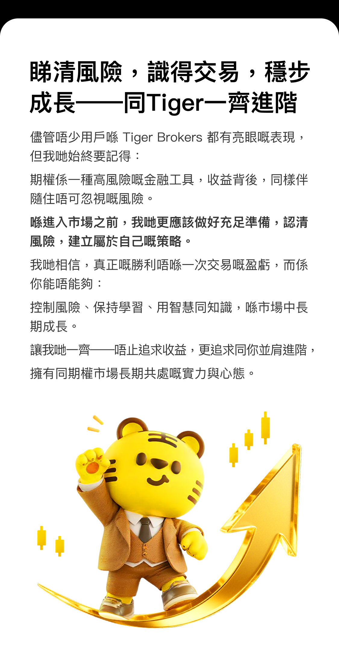 投資涉及風險,過往表現並不反映未來表現。老虎證券對資訊準確性、完整性、及時性不做擔保,並不構成任何投資建議和意見。截圖僅為展示之用。期權是股票的衍生性金融產品,投資前應考慮自身風險承受能力,詳情留意相關風險披露。