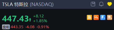大型科技股盘前涨跌不一。特斯拉跌0.9%,苹果跌0.3%,谷歌跌0.5%;英伟达涨0.05%,微软涨0.07%。