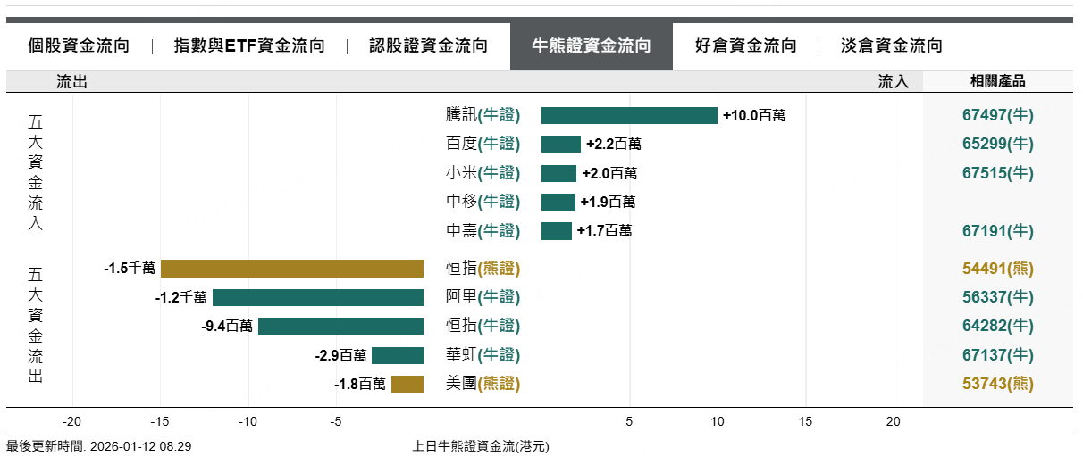 2、恒指牛熊證資金流
