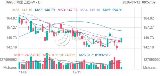 阿里上周五終止三連跌,曾重上20天線水平 (約147.2元水平) 阿里購 阿里摩通六四购A.C /沽 阿里摩通六四沽A.P