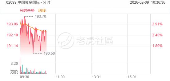 2月9日,港股黄金股普涨,中国白银集团涨近5%,紫金矿业涨近4%,中国黄金国际招金矿业赤峰黄金紫金黄金国际涨超2%。