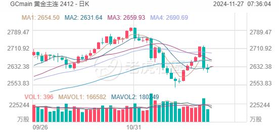 【黄金】由于以色列同意与黎巴嫩达成停火协议导致避险需求减弱,金价盘中跌至一周低点,但市场对乌克兰和美国当选总统特朗普关税计划的担忧限制了跌幅,美联储纪要支持渐进降息则令金价短线止跌转涨。截至发稿 黄金主连 2412 报2634.2美元,涨幅0.49%: