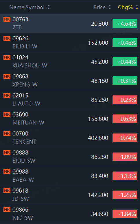 ZTE rose by 4.64%. ZTE's stock price surged in both the Hong Kong and A-share markets, attracting widespread market attention. Institutions are optimistic about the company's new round of growth, particularly in the booming computing power business.