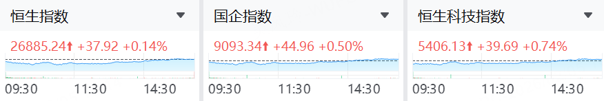 港股两大指数低开后震荡回升,午后升幅扩大。截至收盘,恒生指数收涨0.14%,报26885.24点;恒生科技指数收涨0.74%,报5406.13点;国企指数收涨0.50%,报9093.34点。盘中一度震荡,午后科技与消费板块带动指数转强。贵金属与有色承压拖累部分周期股,整体市场情绪较前几日有所修复。临近春节,餐饮等消费股走强,叠加新能源汽车与部分医药股活跃,成交保持中等偏上水平。