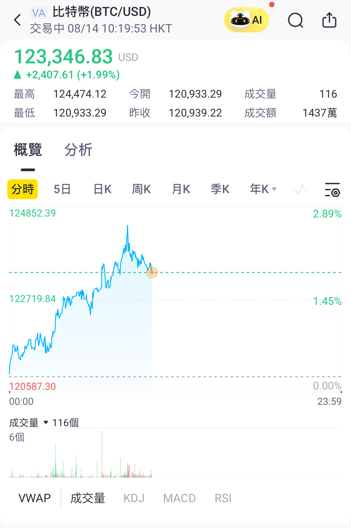 BTC 短时突破 124,000 美元,创历史新高
