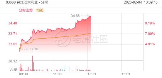 2月4日,港股煤炭股午后继续走高,兖煤澳大利亚涨超10%,兖矿能源涨近10%,中煤能源涨超7%,中国神华涨超6%。
