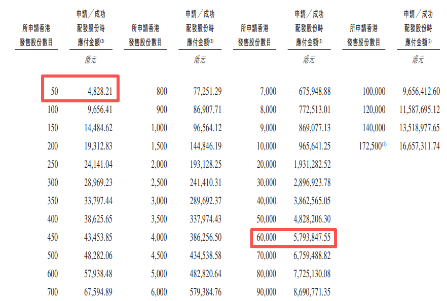乙组门槛为6万股,申购所需资金约579.39万港元。