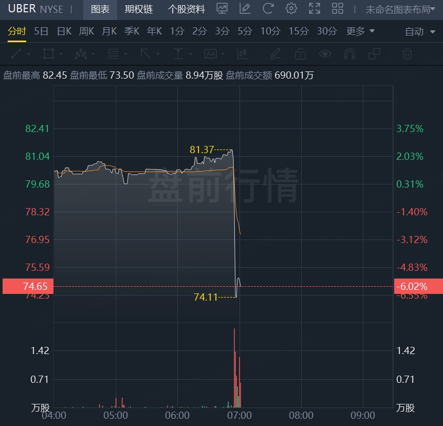 财报发布后,优步盘前大跌逾6%。