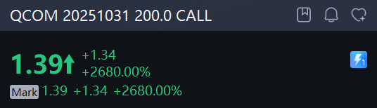 There are 640.61K Qualcomm option contracts traded on Monday, up 857% from the previous trading day. Call options account for 69% of overall option trades. Particularly high volume was seen for the $200 strike call option expiring October 31, with 51,410 contracts trading. QCOM 20251031 200.0 CALL